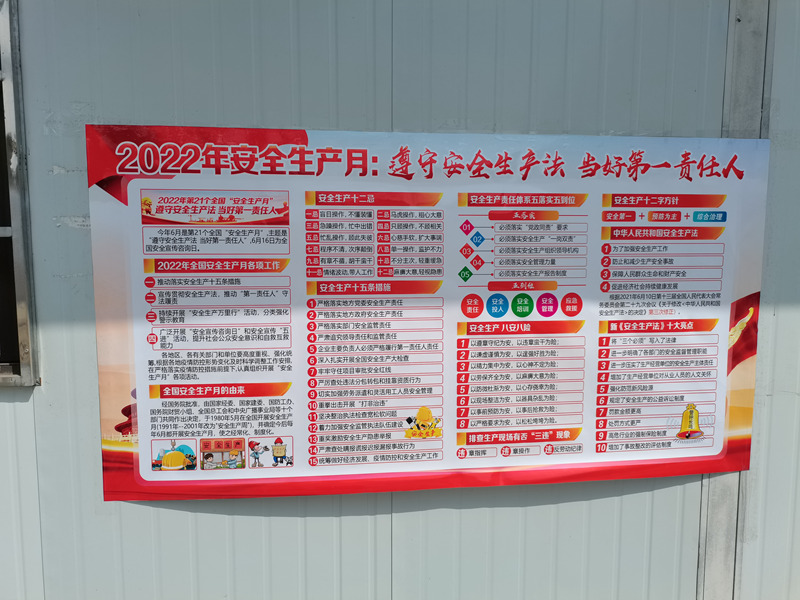 总公司在各办公区、维护基地、生产厂区张贴展板、海报82幅,悬挂横幅12条,发放安全宣传手册500余份,通过钉钉云课堂平台发布《2022年安全生产月官方宣传片》等12期安全学习资料,大力宣扬安全生产法律、法规以及安全生产知识,营造出浓厚的安全生产月活动氛围。