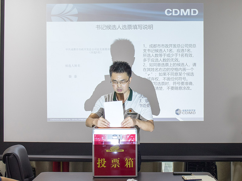 会上,秦泰同志宣读了建设集团党委《关于同意中共成都市市政开发总公司总支部委员会委员候选人预备人选的批复》,大会通过了选举办法和工作人员名单,选举产生了市政公司党总支第一届委员会委员及书记,公司党总支领导班子正式组建完成。