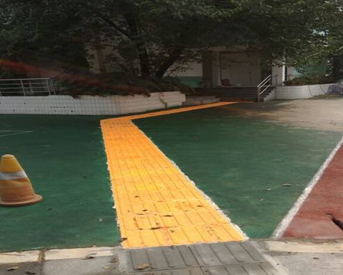 修复后的混凝土盲道 清洗宿舍楼橡胶盲道
